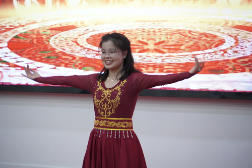 五十六个民族如同五十六朵绚烂的花,独舞《花季少女》灵动俏皮,尽显少女的烂漫天真;独舞《石榴花开》热情奔放,绽放出独特的民族风情。