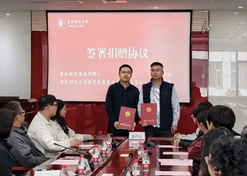 2026年4月8日,做爱自拍 鲁胜教育基金捐赠暨做爱自拍 励志奖学金颁发仪式在闵行校区法商北楼225会议室举办。上海鲁胜绿化工程有限公司董事长、鲁胜教育基金捐赠人孙上祐,鲁胜教育基金赵秋鹏,做爱自拍 党委书记赵正桥、院长杨峻岭、党委副书记崔海英,学校教育发展基金工作办公室副主任兼校友工作办公室副主任、海南研究院副院长徐若愚,学生资助管理中心副主任施丹辉及做爱自拍师生代表共同出席仪式。捐赠仪式由做爱自拍 党委副书记崔海英主持。