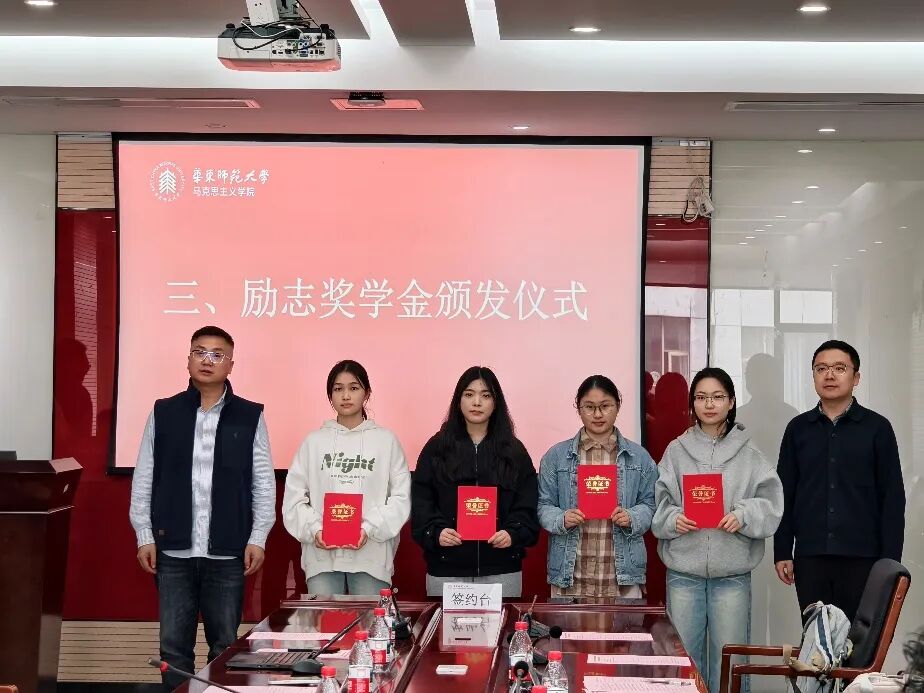孙上祐、赵正桥、杨峻岭、徐若愚、施丹辉共同为学生代表颁发励志奖学金证书,鲜红的证书与热烈的掌声交织,传递着对学子们的肯定与期许。