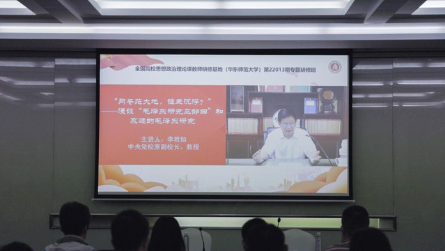 为深入贯彻习近平新时代中国特色社会主义思想,深入学习贯彻党的十九大和十九届历次全会精神,以迎接学习贯彻党的二十大为主线,认真贯彻习近平总书记关于教育的重要论述特别是在学校思想政治理论课教师座谈会上的重要讲话精神,发挥思政课立德树人关键课程和铸魂育人主渠道作用,助力高校思政课教师队伍高质量建设。2022年8月29日至8月31日由教育部社科司主办、全国高校思想政治理论课教师研修基地(华东师范大学)承办的主题为毛泽东思想及其历史地位的第22013期全国高校思想政治理论课教师研修基地专题研修班在沪举办,共有来自上海市高校的48位思政课教师参加本期研修。本次研修在教育部基地研修平台同步直播。